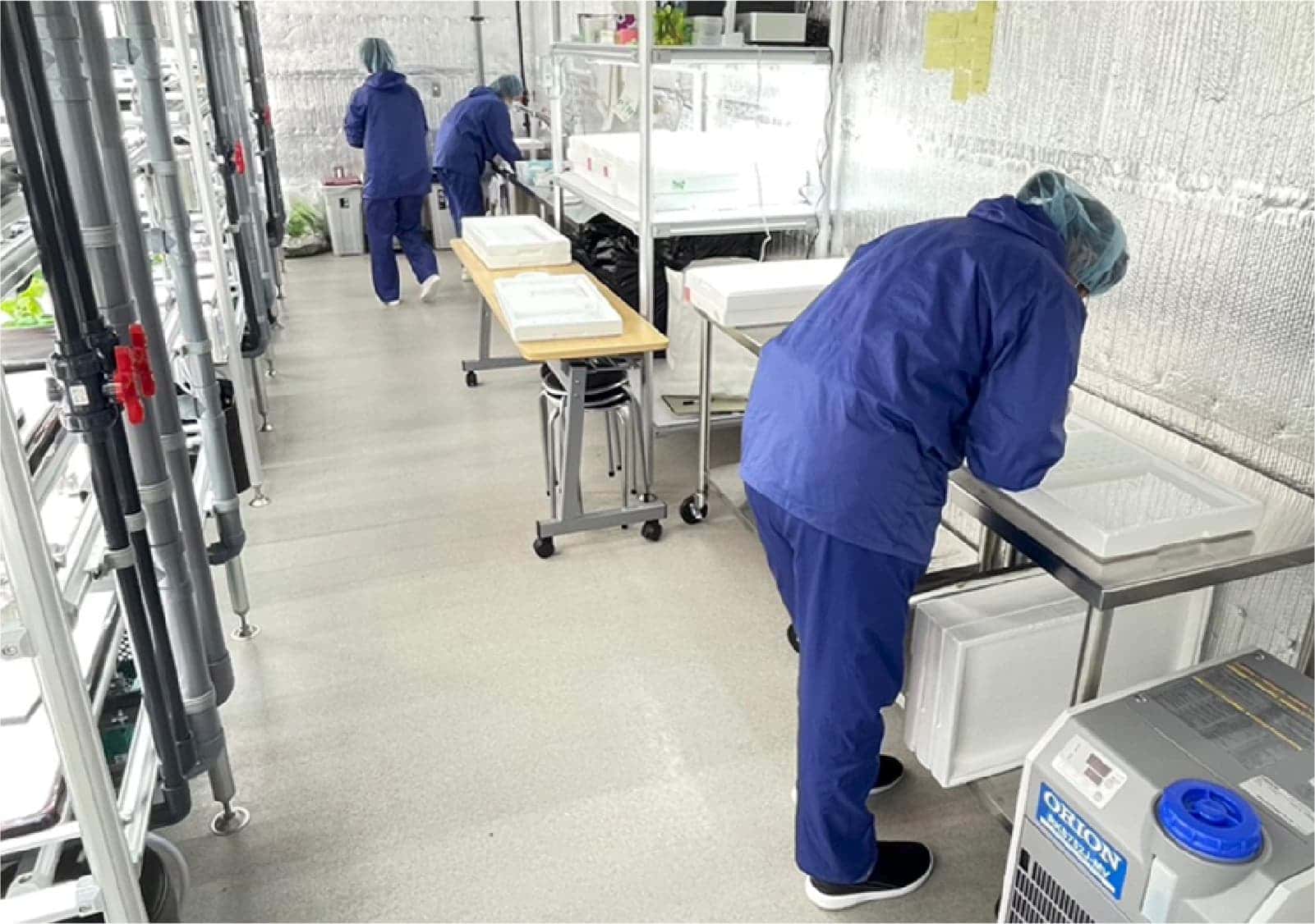 作業活動の一環として、室内水耕栽培の設備を利用します。室内水耕栽培の衛生的で快適な環境の中、