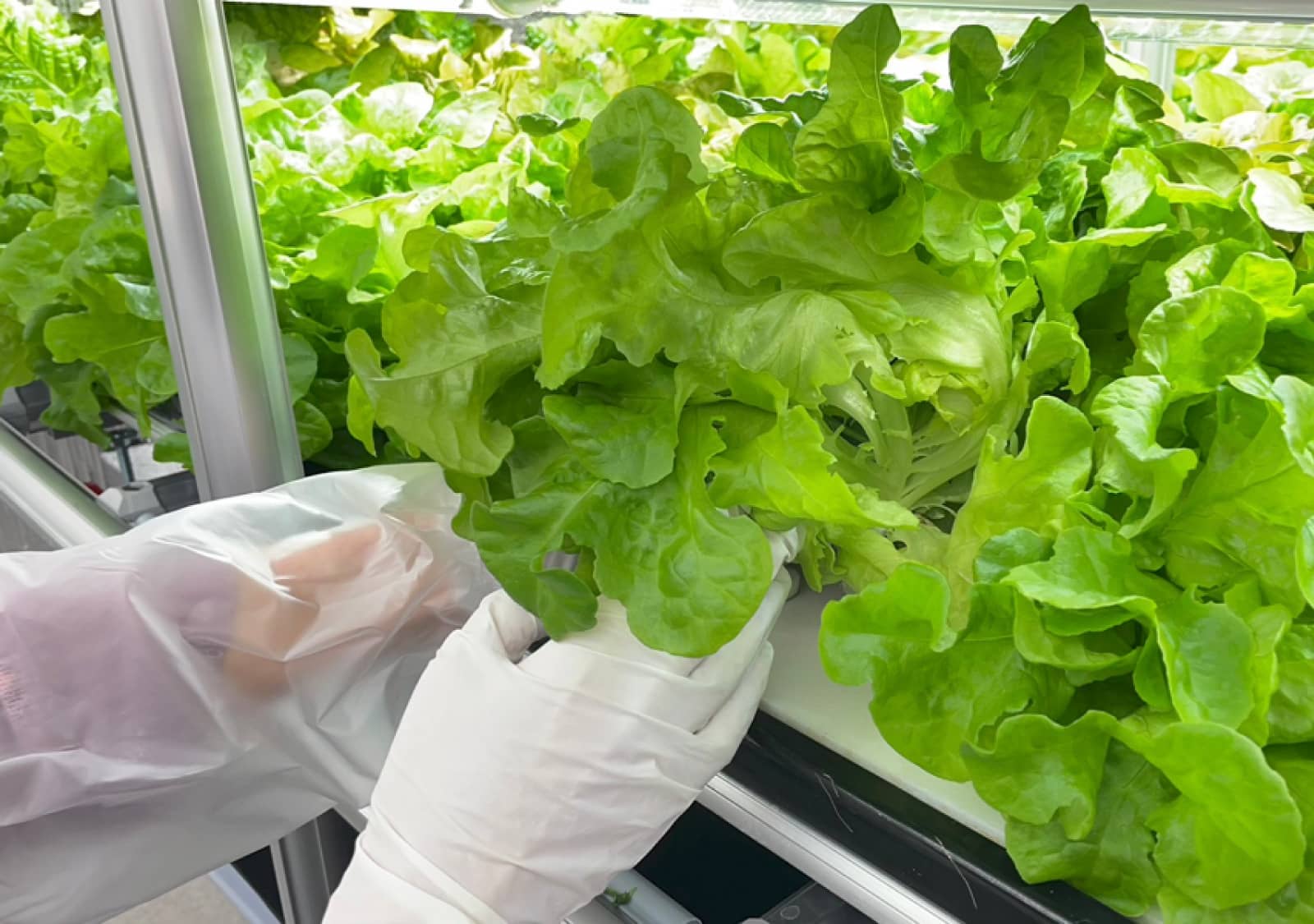 季節ごとにバランスを考え、安定的に葉物野菜を生産・収穫します。外気温に左右されないので不作もなく、育つ過程も一定のため、最大12毛作まで栽培することができます。細菌や虫もつかないため、農薬を使用していません。美味しい、安全な野菜を育てています。水耕栽培で育てられる葉物野菜は約70種類あります(リーフレタス、フリルレタス等レタス系、ベビーリーフ、サンチュ、スイスチャード、バジル、ミズナ、パクチー、クレソン、ほうれん草、ルッコラ、ペパーミント等)。農薬を一切使わない、虫もつかない葉物野菜という社会的ニーズのきわめて高い農作物の生産を担うことで、社会参加します。